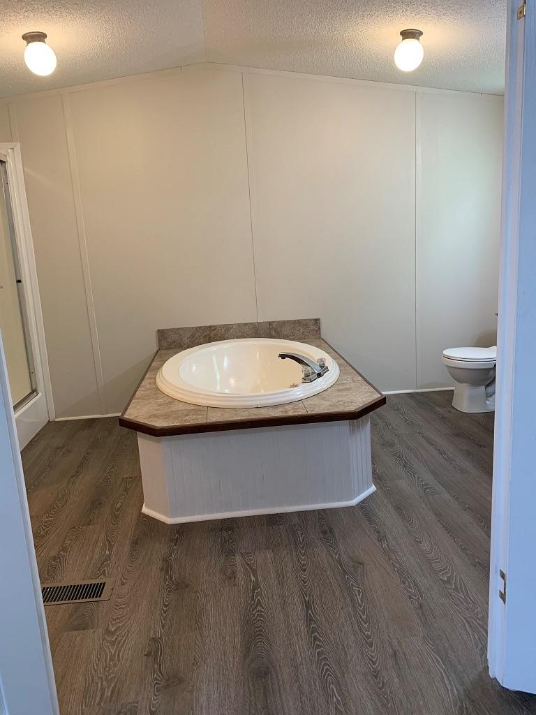 beautiful garden tub and separate shower in master bath, and a walk-in closet. City water, a private septic system, garbage collection,