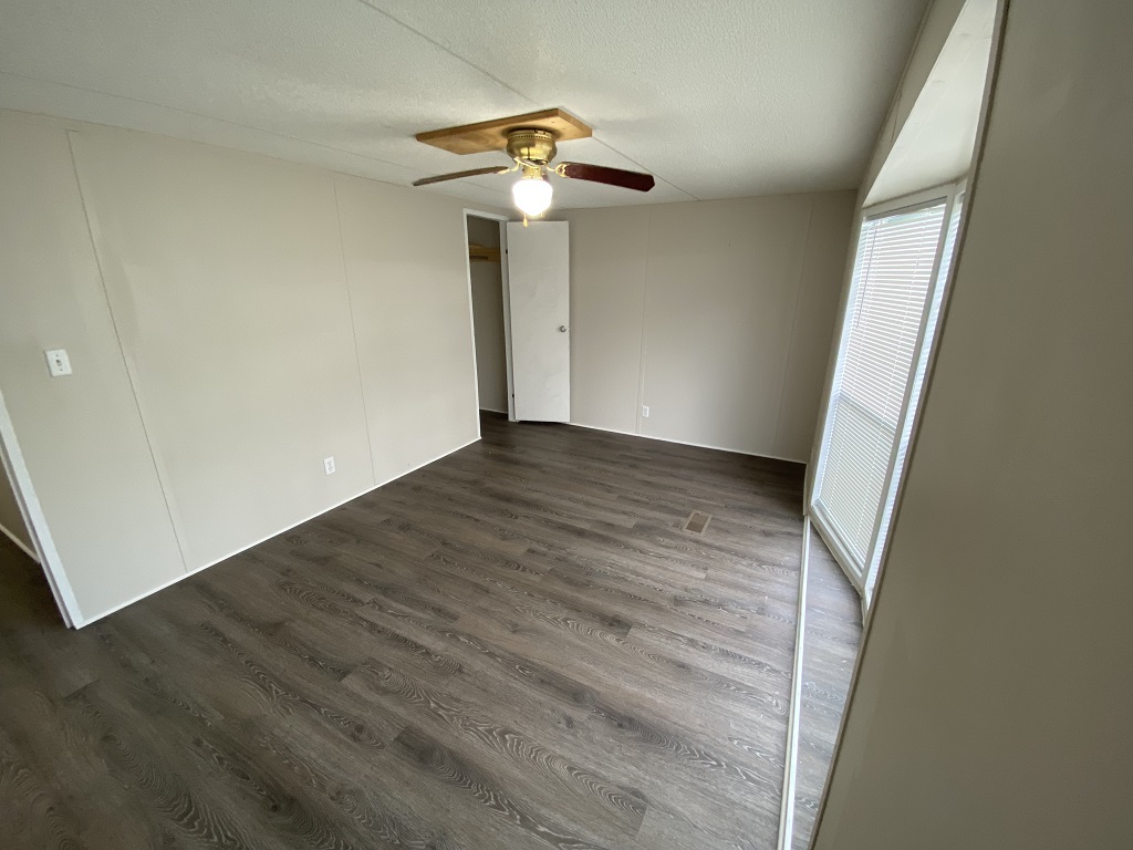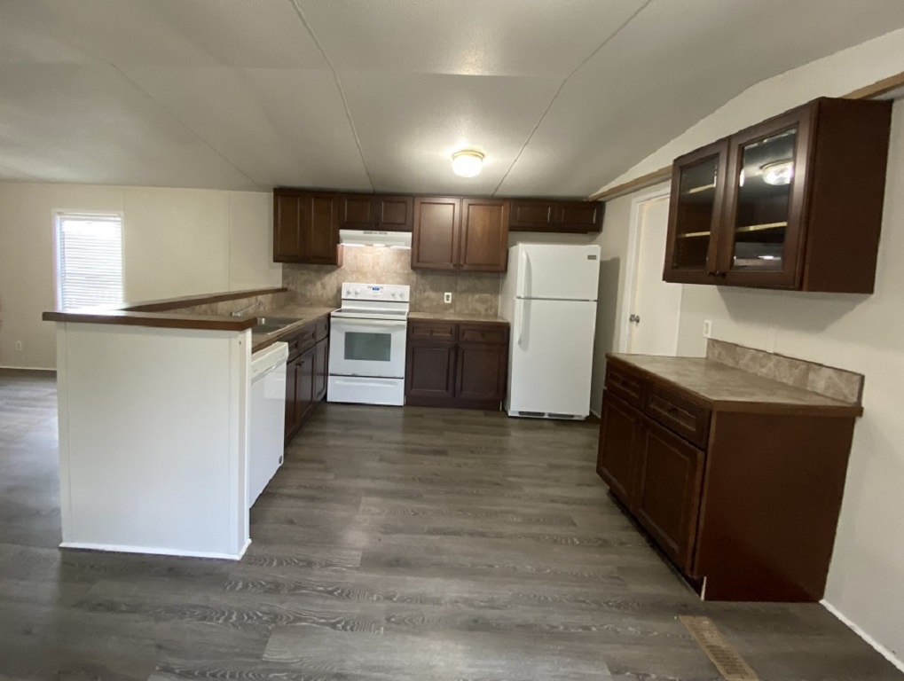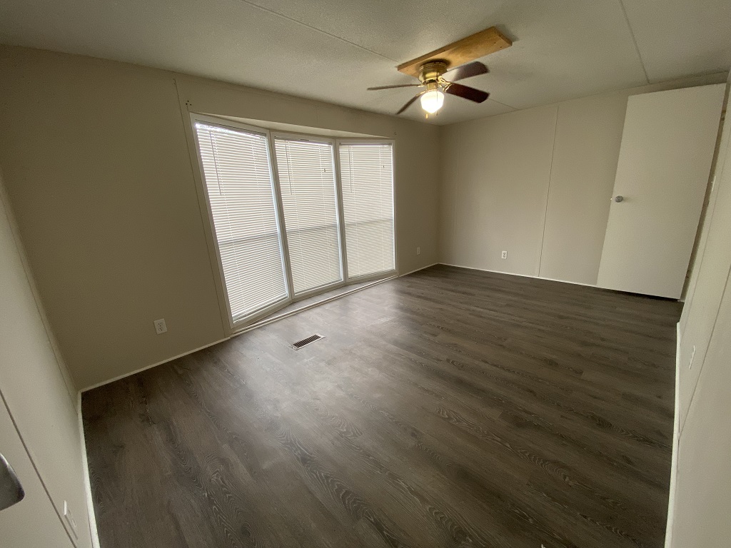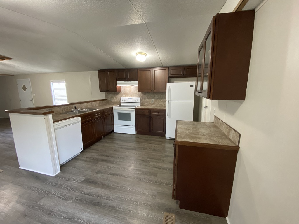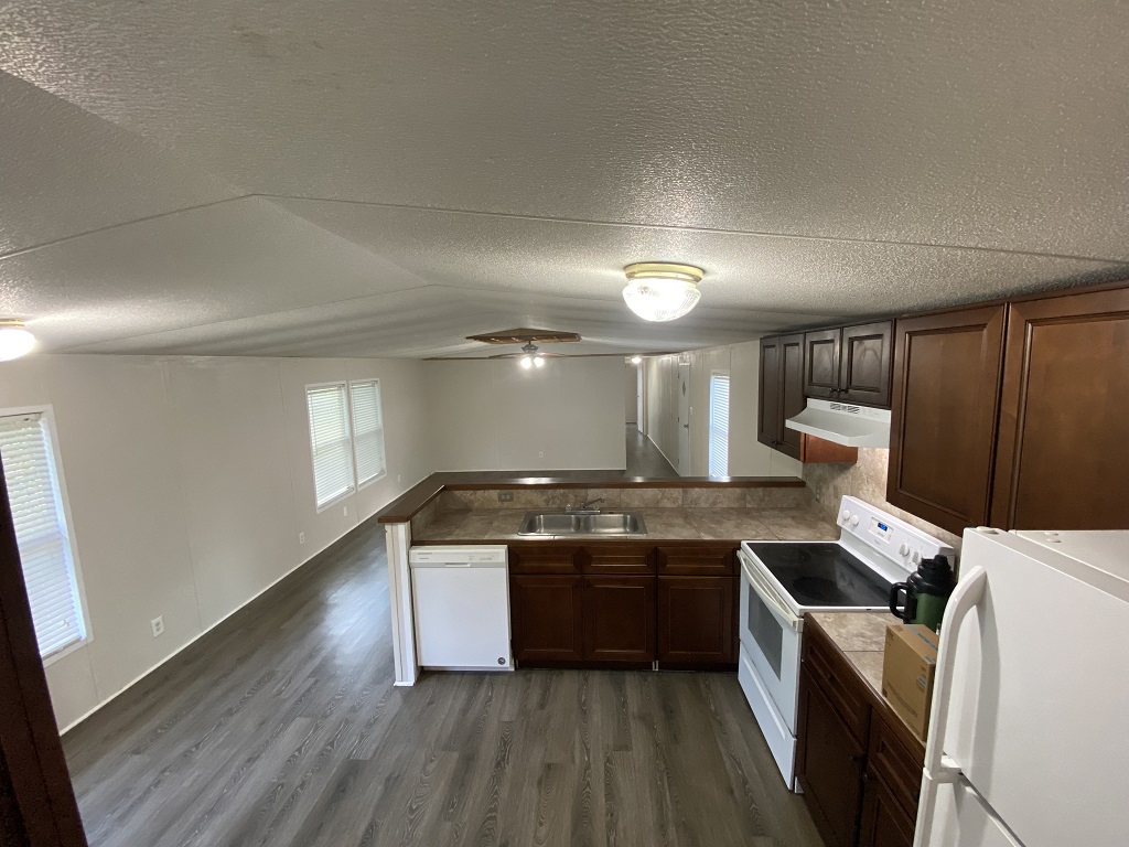 space, stove, dishwasher, refrigerator/freezer, ceiling fans
