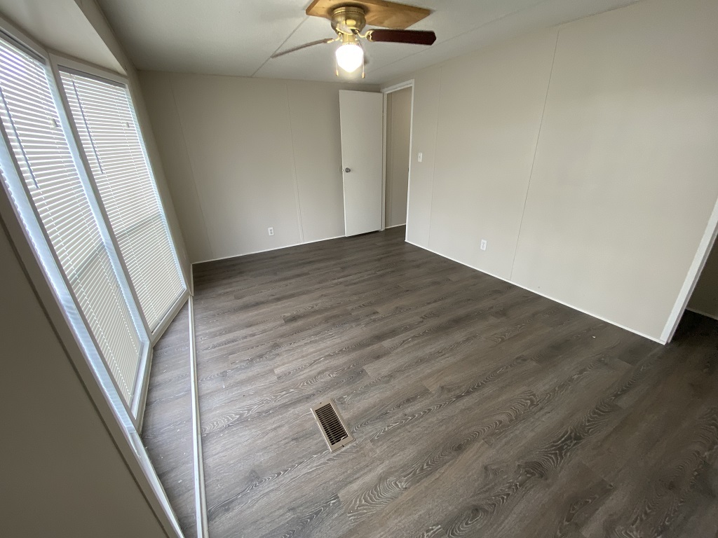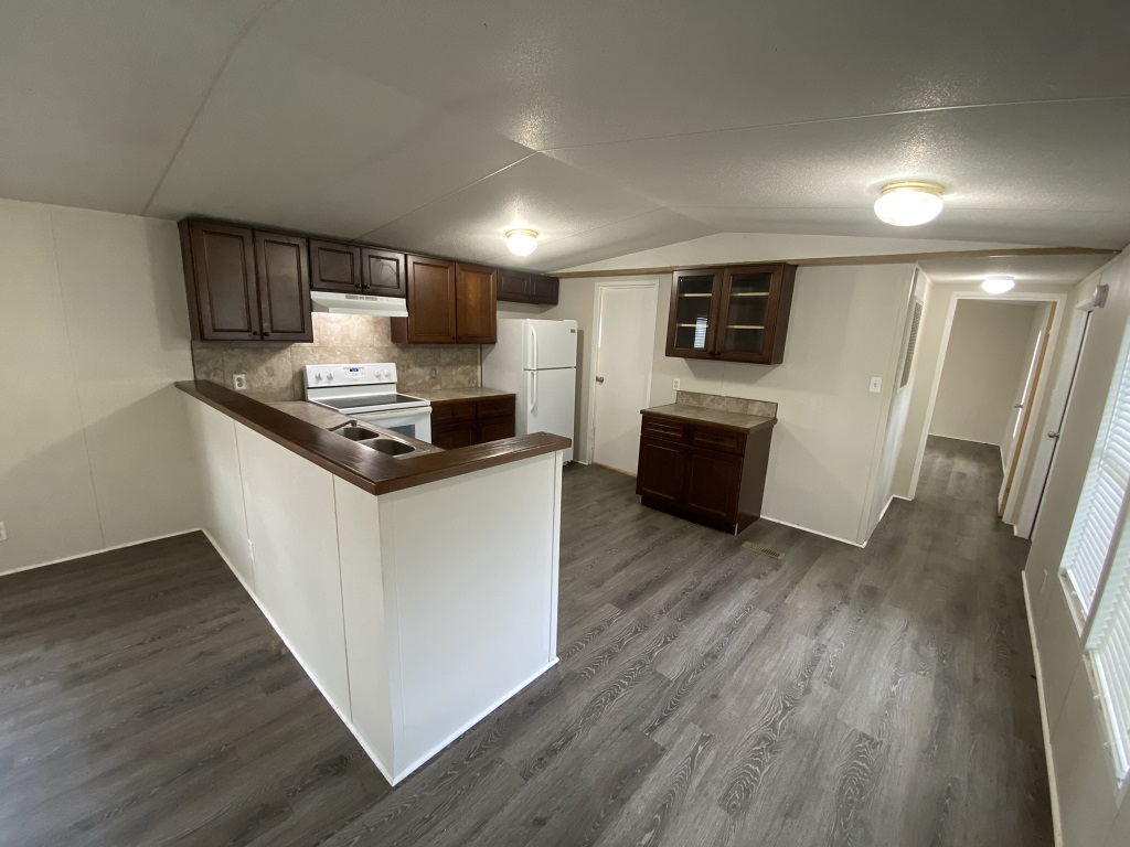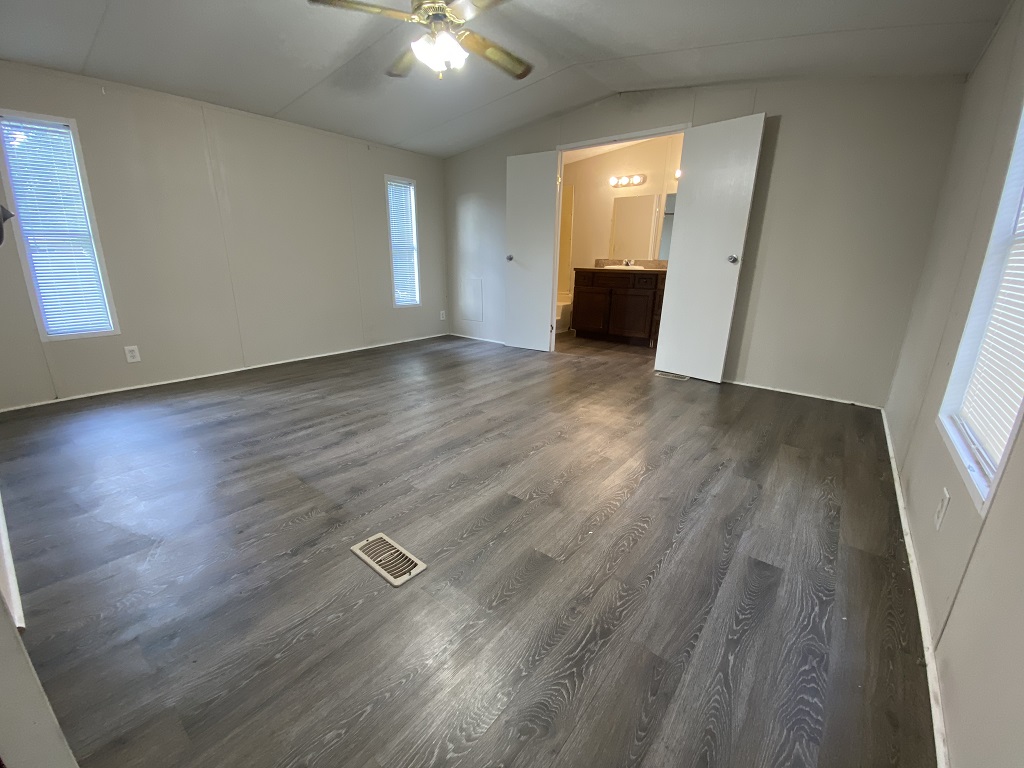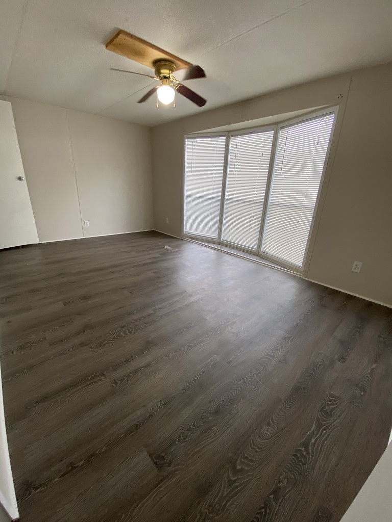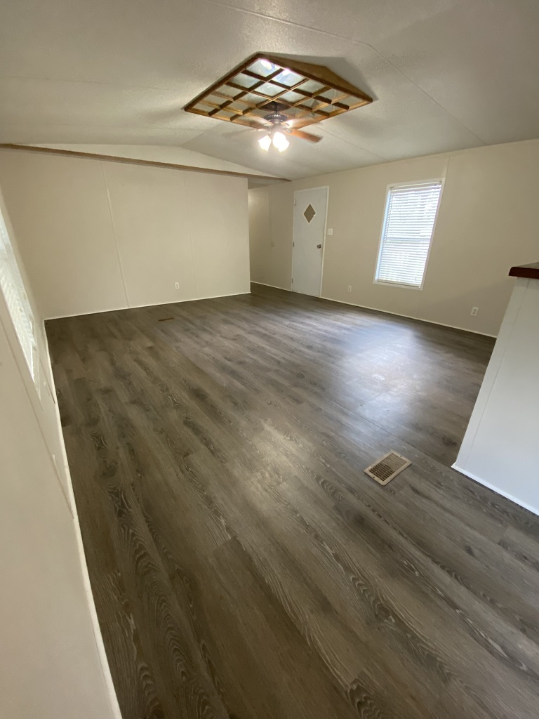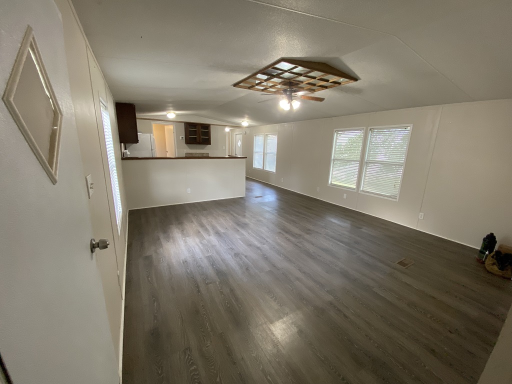 space, stove, dishwasher, refrigerator/freezer, ceiling fans
